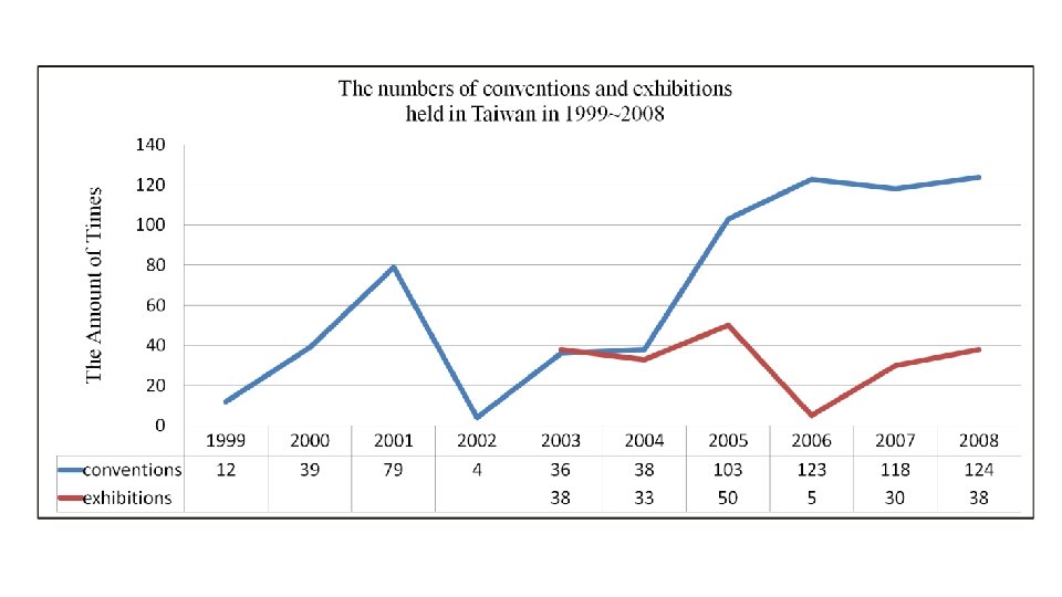 O T • After entering WTO, Taiwan attracts international entrepreneurs to its open markets. • Asia has become a major region where international conventions and exhibitions are held. Business opportunities are here. • Taiwan leads the world in technology and service industry. • The MICE industry is growing rapidly in China, making China into a formidable competitor. • Developments in internet communication and advertising, even online transactions, reduce the need for many MICE events.