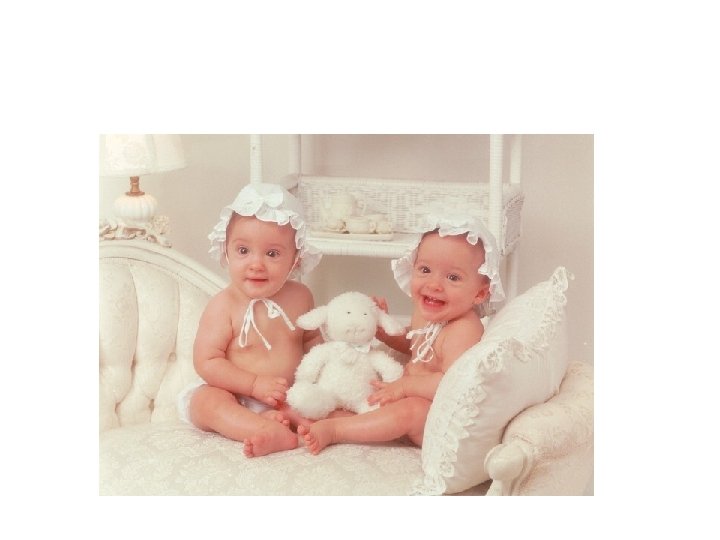 Development of twins • Twins in most respects will do as well as a single baby, but the one area they can fall behind is language development. • With twins, the mother tends to talk to both of them together, so there is less one-toone communication. • she will be much busier and the temptation to leave the twins to amuse them selves is much greater.