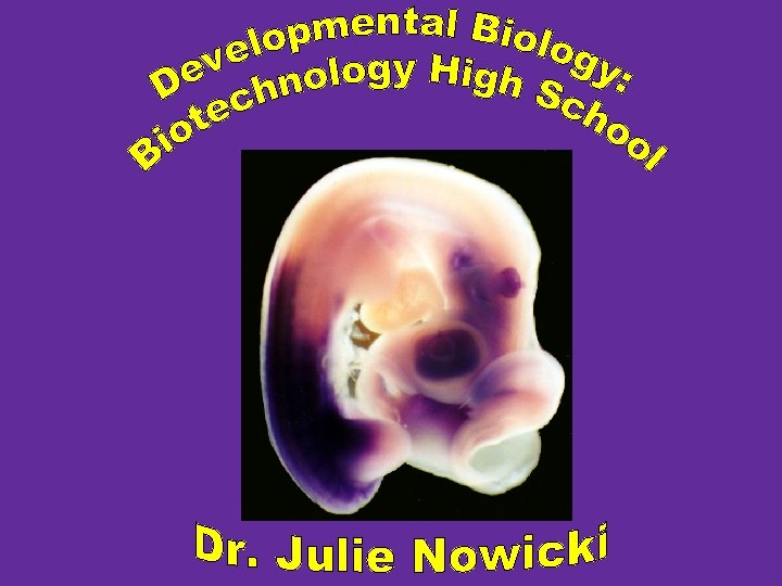 Developmental Biology • The study of an organism from the time the egg is fertilized until birth • During this time period the organism is called an embryo • “The concept of an embryo is a staggering one, and forming an embryo is the hardest thing you will ever do. To become an embryo you had to build yourself from a single cell. ” Scott Gilbert