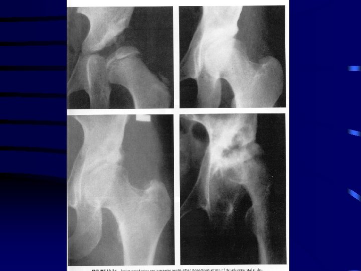 Natural History Con’t • Subluxation predictably leads to degenerative joint disease and clinical disability – mean age symptom onset 36. 6 in females and 54 in men – severe xray changes 46 in female and 69 in males • Cooperman – 32 hips with CE angle < 20 without subluxation – 22 years all had xray evidence of DJD – no correlation between angle and rate of development – concluded that radiologically apparent dysplasia leads to DJD but process takes decades