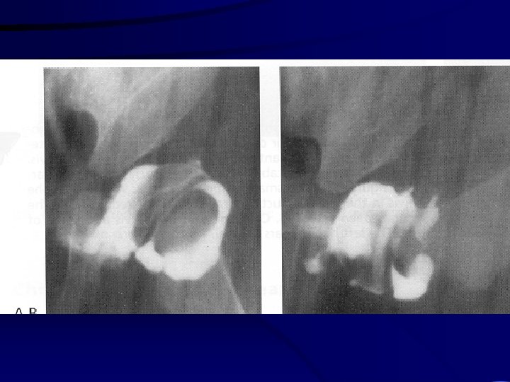 Obstacles to Reduction • Extra- articular – Iliopsoas tendon – adductors • Intra-articular – inverted hypertrophic labrum – tranverse acetabular ligament – pulvinar, ligamentum teres – constricted anteromedial capsule espec in late cases • neolimbus is not an obstacle to reduction and represents epiphyseal cartilage that must not be removed as this impairs acetabular development