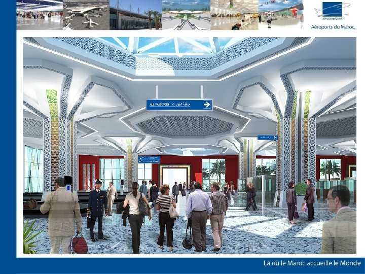 DEVELOPPEMENT DE L’AEROPORT DE FES SAISS B TIMENT ( 260 MDHS): Construction d’un nouveau terminal d’une superficie d’environ 26 000 m², portant ainsi la superficie globale à 31 500 m² permettant le traitement d’un trafic annuel de près de 3 millions de passagers. INFRASTRUCTURES (100 MDHS): ü L’extension des parkings avions (3 moyens courriers et une gros porteur); ü La réalisation d’une nouvelle voie de liaison avec la piste ; ü La réalisation d’un parking véhicules côté ville d’une capacité de 800 places et d’une voie d’accès. EQUIPEMENTS: ( 100 MDHS) Système de traitement des bagages, Équipements de sûreté, Mobilier aéroportuaire, Signalisation fixe et enseignes extérieures ; Contrôle d’accès et vidéosurveillance, Téléaffichage et équipements de CUTE ; Système d’information, Système de sonorisation. 2