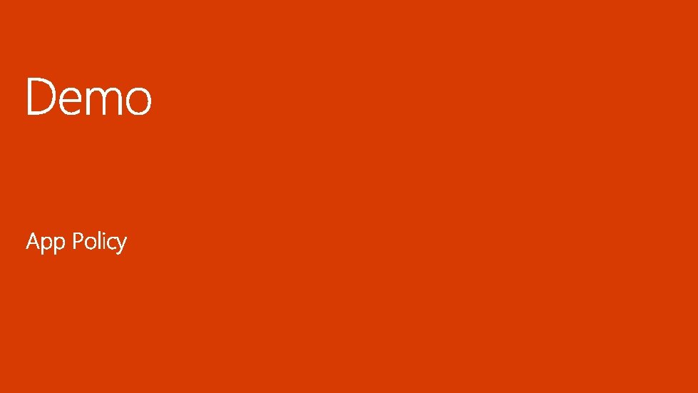 Multi-identity policy Managed apps Corporate data Personal data Deploy policies for app-layer protection per user, per app Maximize mobile productivity and protect corporate resources with Office mobile apps, App Store and LOB Apps including multi-identity support Manage only corporate data and leave personal alone on multi-identity supported apps Personal apps Enable secure viewing of content using the Managed Browser, PDF Viewer, AV Player, and Image Viewer apps