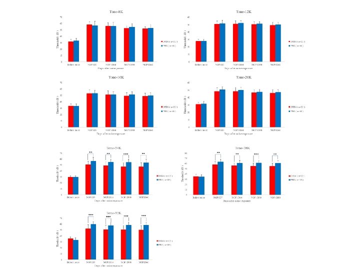 30 days post-noise Normal PBS Detromethorphan Middle turn Mice:CBA/Ca. J Noise: 118 d. B 3 hrs