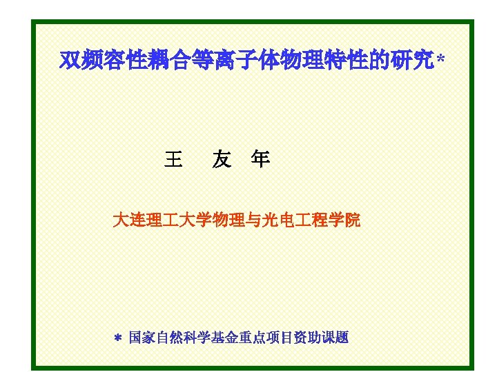 Two-dimensional model 2 R H D LF power H= 2. 45 cm 2 R=43. 18 cm HF power Schematic diagram of DF-CCP D=6. 35 cm