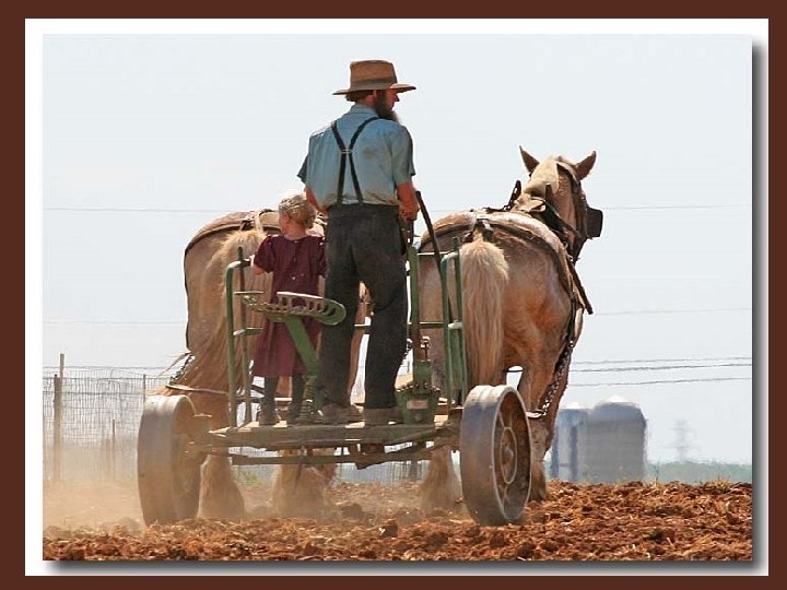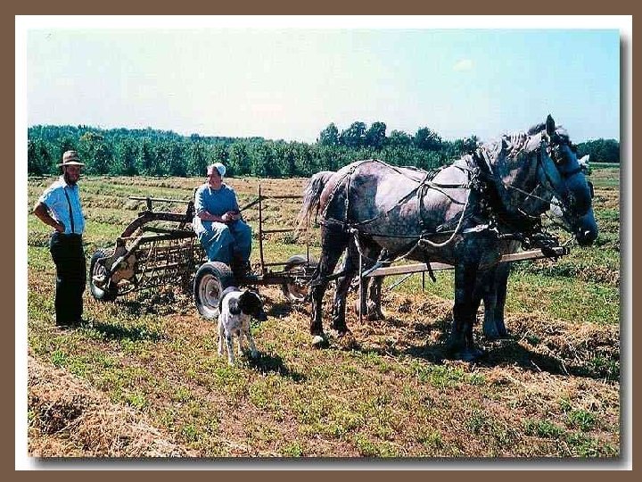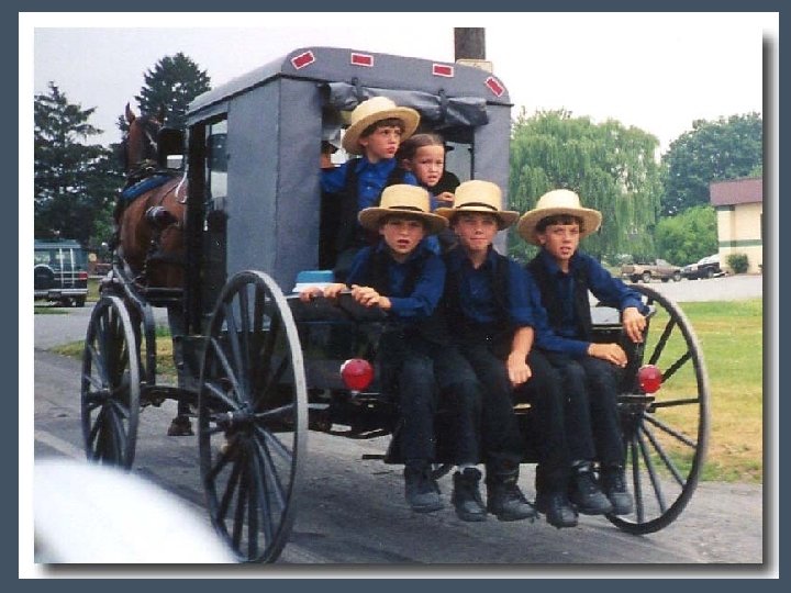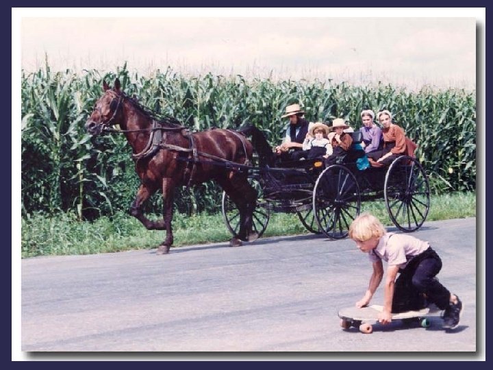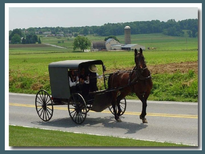 Chez les Amish le cheval est un compagnon vénéré et indispensable. Certes, on sourit de les voir se déplacer dans leurs carrioles à cheval, si incongrues dans le flot des voitures américaines modernes. Mais, au vu des embouteillages locaux, ils circulent aussi vite que l'homme moderne. Et ils polluent moins. L'odeur du crottin est certes plus "précise" que celle de l'oxyde de carbone mais elle est sûrement moins néfaste à l'environnement et à la santé.