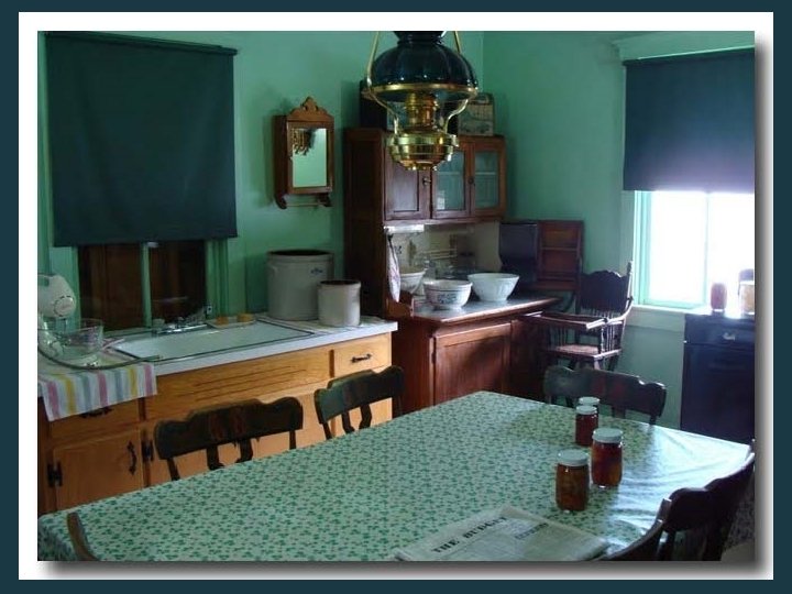 Les habitations des Amish sont de toutes petites maisons sans le moindre confort moderne, où il n'y a ni eau courante, ni électricité, puisque leur religion l'interdit. Lorsque la famille ou le groupe se rassemble sous la quiétude, la douceur, la paix qui règne autour du halo des lampes à huile, c'est toute l'ambiance des tableaux de Vermeer qui reprend soudainement vie.