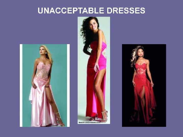 We sincerely hope the previous slides are helpful to our young ladies and parents as they select their dresses for this most important occasion of their high school experience. Again, if there any questions regarding a dress’s appropriateness, please contact: Dr. Hall or Ms. Weatherington