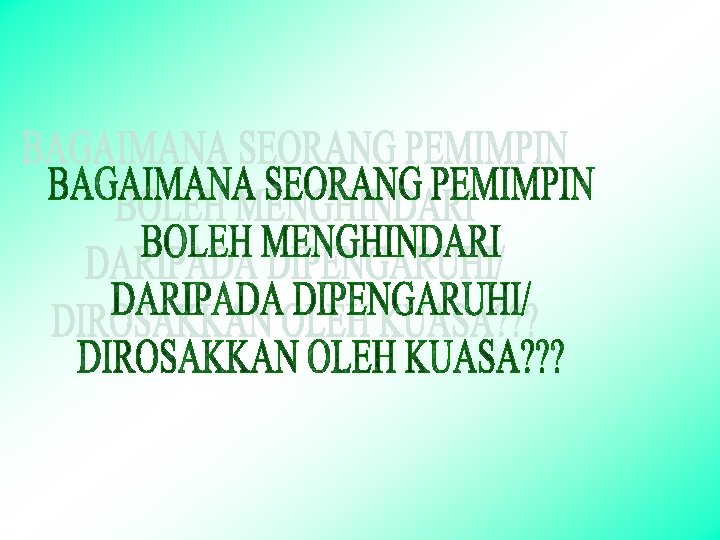 Ketua adalah pemimpin!!! …. Apa pandangan anda ? ? ? “Yang penting ialah kepimpinan dan bukan pemimpin” …. Anda bersetuju ? ? ?