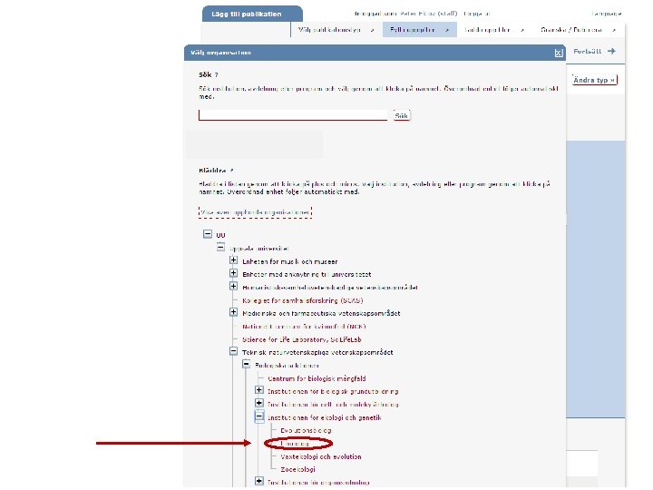 Inloggad som forskare/anställd (”staff”) Länkar valda lokalt