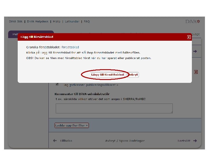 Lägga till försättsblad (parallellpublicering) Försättsblad