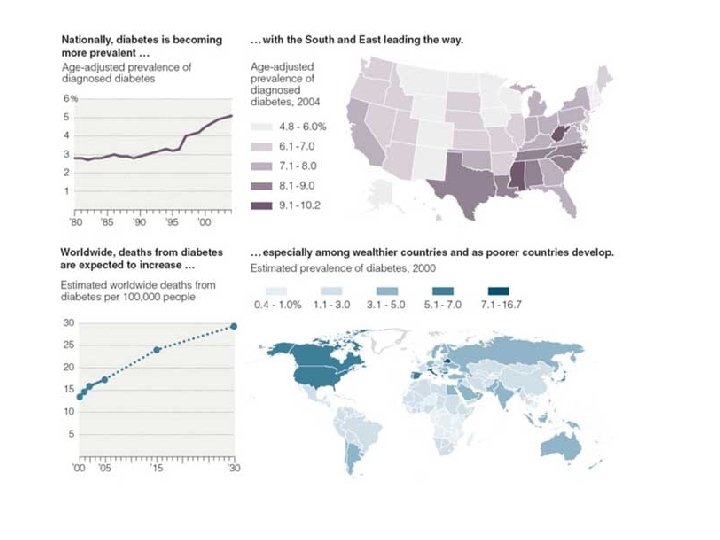 Prevalence/Risk factors • 1999 study showed it affects 7% of US population; 16 -20% of adults over age 65. • Risk factors: – Age – Reduced physical activity – Obesity: adipocytes secrete factors that modulate insulin activity in a negative way (e. g. adipsin, TNF-alpha, IL-6, MCP 1, etc. ) – Ethnicity differences • Need to screen high risk individuals because symptoms show up late