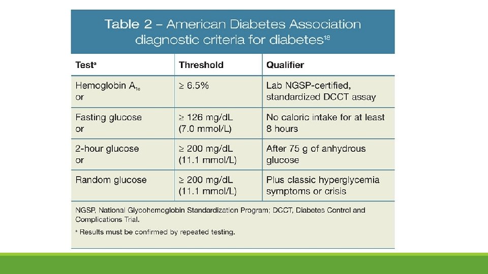 Other testing options Fasting plasma glucose at threshold of 85 mg/d. L ◦ Didn’t perform as well as 50 gram glucose challenge No threshold for Hg A 1 c in second and third trimesters as screening for GDM ◦ 4 studies looked at 5, 5. 3, 5. 5 and 7. 5 – no clear pattern between level and probability of GDM Periodic random fasting and 1 or 2 hour postprandial blood glucose testing ◦ Women with dumping syndrome after gastric bypass IV GTT, candy load, commercial soft drinks – less sensitive, not been well validated
