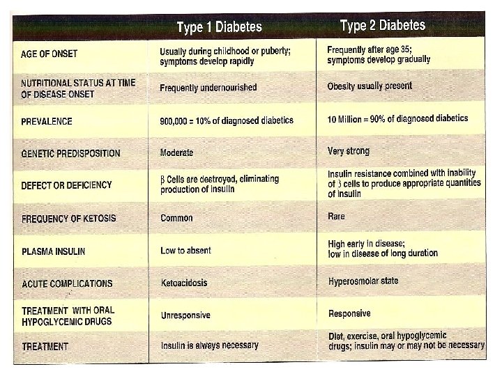 • Over a years, the autoimmune attack on the βcells leads to gradual depletion of the β-cell population • symptoms appear unexpectedly when 80— 90% of the β cells destroyed. • At this point, the pancreas fails to respond adequately to ingestion of glucose • insulin therapy is needed to restore metabolic control and prevent life-threatening ketoacidosis.