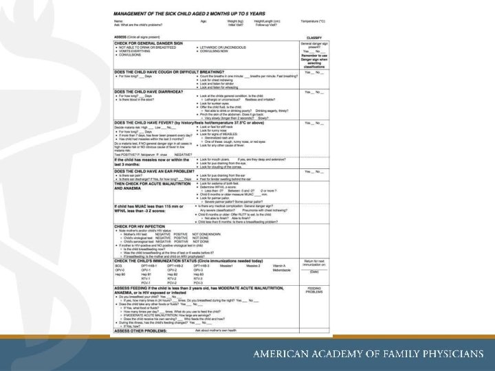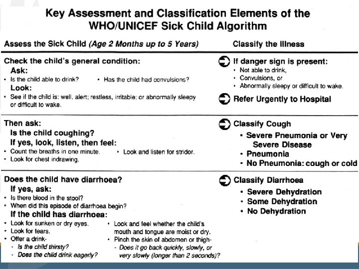 Algorithm / checklist approach to the Integrated Management of Childhood Illness– IMCI
