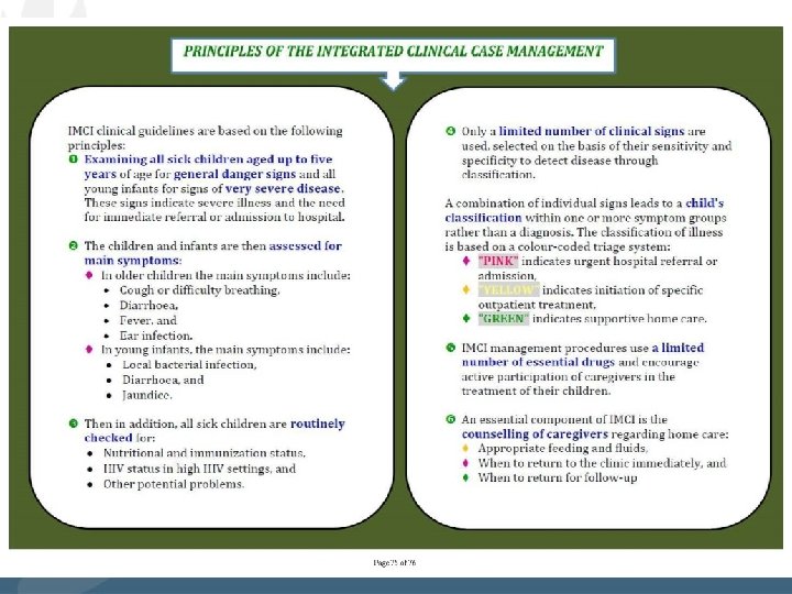 IMCI 2014 Chart. Book: Algorithm and checklists 2014 TOC and Let’s place the diagnosis and treatment of pneumonia in the context of the clinical algorithm for IMCI—the Integrated Management of Childhood Illness—in 2014