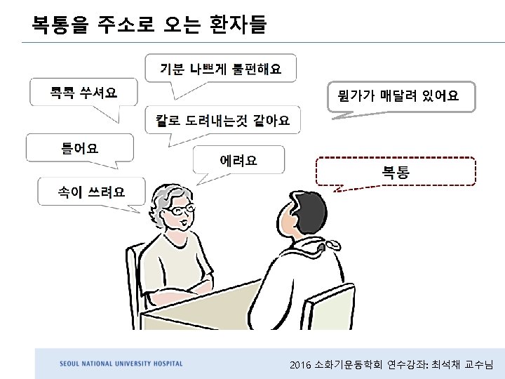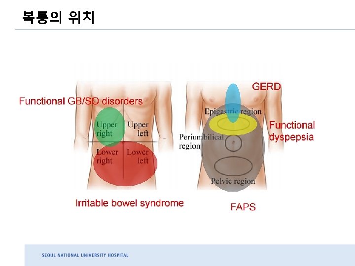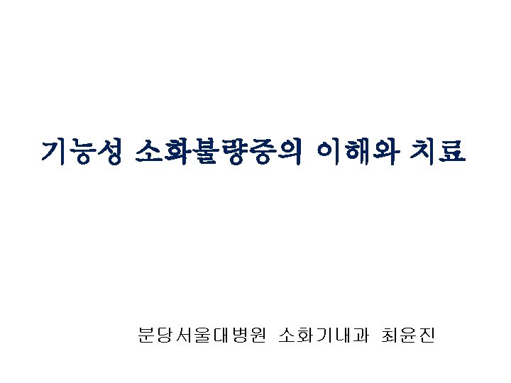 기능성 소화질환의 발생모델 Early Life • Genetics • Environmental Psychological Factors • Life stress • Psychological state • Coping • Social support Brain CNS Gut ENS Physiology • Motility • Sensation • Inflammation • Altered bacterial flora (Drossman DA et al. 2006 Gastroenterology) FGID • Symptoms • Behavior Outcome • Medication • Clinic visit • Daily function • Quality of life