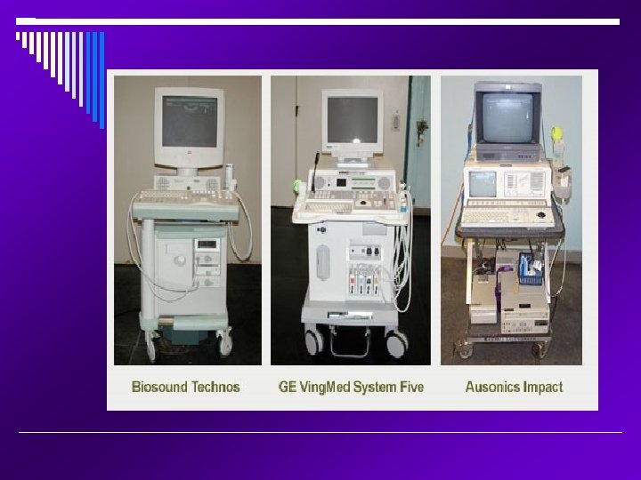 Common uses of Ultrasound cont… Monitor the mare's reproductive tract and optimize the time for breeding The genital tract in stallions Early detection of pregnancy Early detection of problem pregnancies, including fetal abnormalities Cardiovascular Ultrasound can be used to image the heart, lungs, kidneys, liver, spleen, and intestines, even during colic episodes.