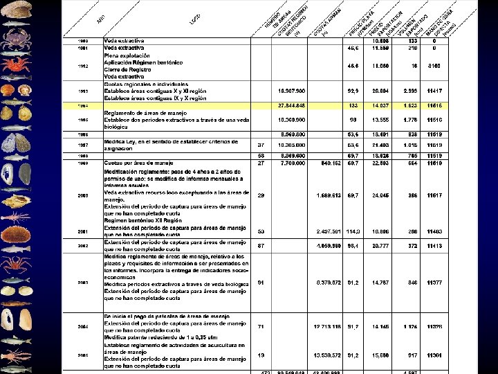 Reseña • En la medida que las organizaciones de pescadores iniciaron actividades bajo esta figura, las cuotas autorizadas y por lo tanto la oferta en el mercado creció rápidamente, pasando de 500. 000 unidades en 1999 a 13, 5 millones en el año 2005.
