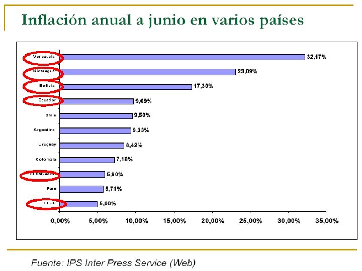 n n n n n Gasto público: proporción del PIB Déficit fiscal: proporción del gasto total y del PIB Ingresos tributarios: proporción del PIB Inflación: tasa anual de variación Salario real: salario nominal / índice del precio al consumidor Medio circulante: tasa anual de variación Tasa de interés activa del mercado Excedentes de explotación: proporción del PIB Remuneraciones: proporción del PIB