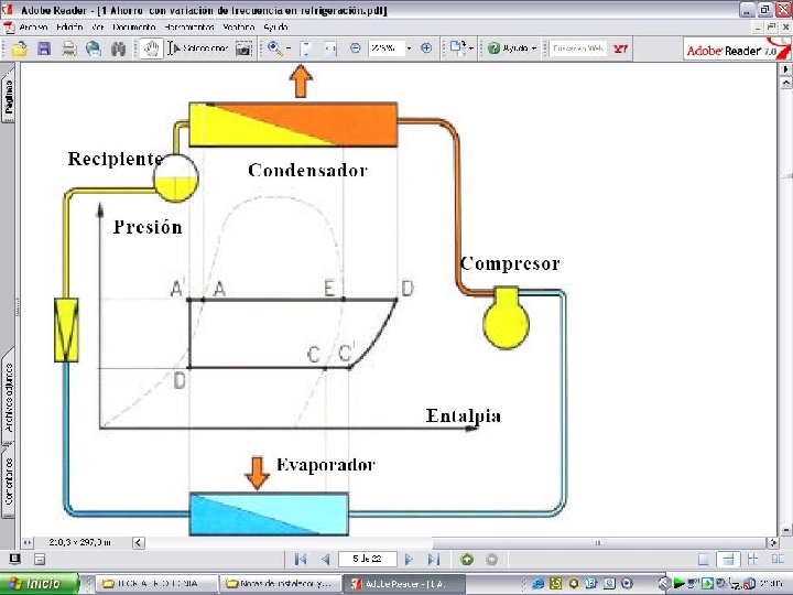 Zona Liquido-Vapor Liquido saturado Vapor saturado Cuando se representa el funcionamiento de una instalación en el diagrama, veremos que la condensación y la evaporación del fluido se efectúa en el interior de la campana, ya que en estos procesos tenemos diferentes proporciones de líquido y vapor.