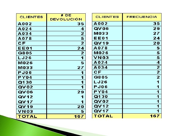 � PRIMER PASO : Ordenar a los clientes de acuerdo a la frecuencia de devolución en forma descendente.