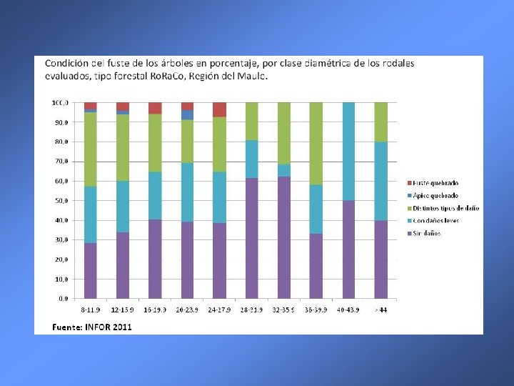 Condiciones y desafíos ü No hay mercado para hacer hoy de los renovales bosques económicamente rentables ü Promulgación de la Ley 20. 283 para apoyar entre otras, las actividades silviculturales destinadas a manejar y recuperar bosques nativos para fines de producción maderera ü Las bonificaciones al manejo son limitadas ü Es muy probable que por condiciones técnicas, económicas y financieras las intervenciones silvícolas se realicen con alta intensidad ü Asegurar que las bonificaciones tengan sentido económico