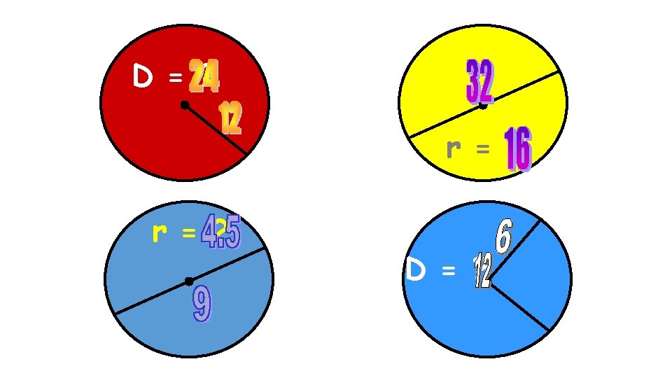 Formula Radius = ½ diameter or Diameter = 2 r