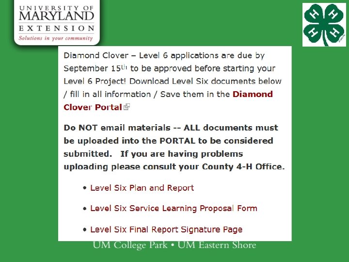 Diamond Clover Level 6 http: //extension. umd. edu/4 -h/youth-families/awards-recognition