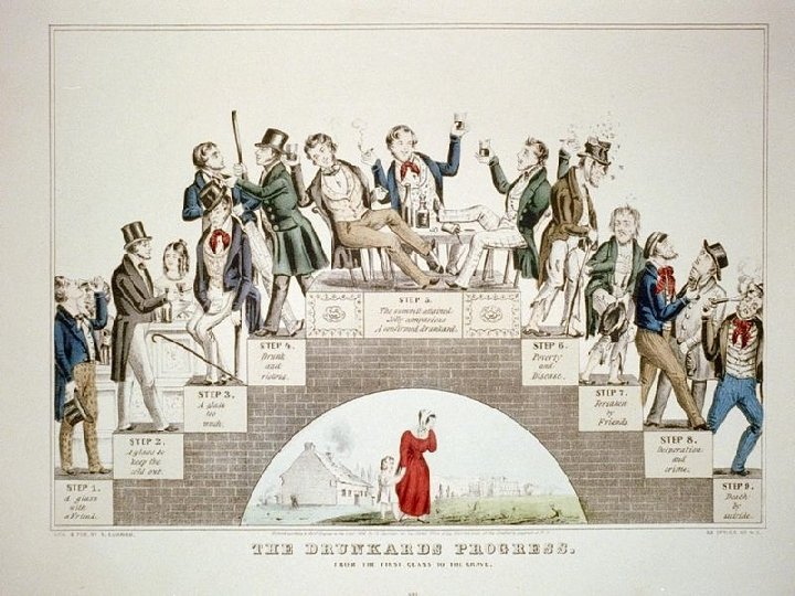 IL MOVIMENTO PER LA “TEMPERANZA” Uno dei problemi più gravi della neonata nazione è l’alcolismo. La diffusione dell’uso di alcolici è dovuta anche alla scarsezza e alla difficoltà di conservare l’acqua potabile. Il movimento per la temperanza vede protagoniste le donne, prime vittime, assieme ai loro figli, della violenza domestica provocata dall’alcolismo. Nel 1833 viene fondato l’American Temperance Movement. Nel 1851 il Maine approva la prima legge “proibizionista”.