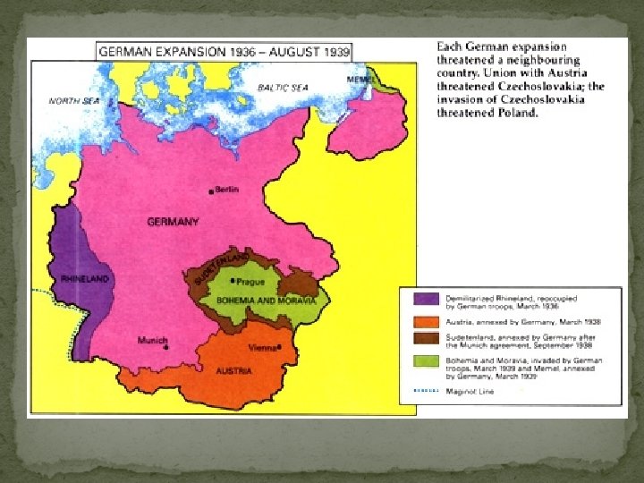 Aggression in Europe �Germany � 1933: Hitler withdraws from League of Nations � 1935: Begins to rebuild military � 1936: Germany retakes Rhineland �Italy � 1935: Invades Ethiopia in Africa �Spanish Civil War erupts � Germany & Italy support rebels � Soviet Union supports government �What did the rest of the world do? � NOTHING