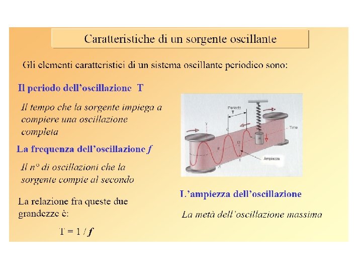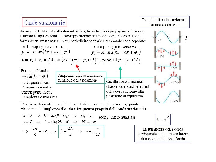 Energia trasportata da un’onda • Per un oscillatore armonico è, • Consideriamo un’onda sinusoidale su un tratto di corda di massa ; ogni elemento della corda esegue un moto armonico, e l’energia per unità di lunghezza sarà proporzionale ai quadrati della pulsazione e dell’ampiezza, • Nell’intervallo di tempo questa energia viene trasferita al tratto di corda successivo; la potenza (energia per unità di tempo) trasportata dall’onda risulta anche proporzionale alla velocità di propagazione,