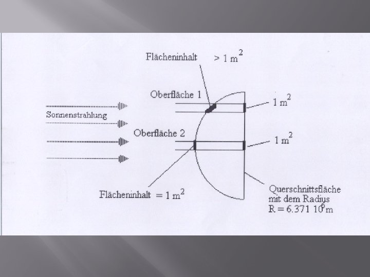 Die Erde als Schwarzkörperstrahler S=Solarkonstante, 1380 Watt/m 2 Te=effektive Strahlungstemperatur =Albedo (0, 30) =Stefan-Boltzmann Konstante 5, 67 x 10 -8 Wm-2 K-4 Faktor 4: Verhältnis der gesamten Erdoberfläche zur Kreisfläche, die Strahlung empfängt.