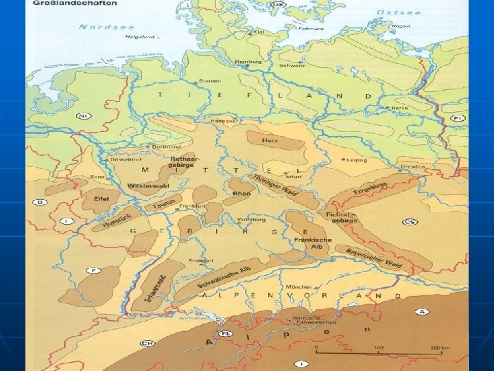 n n Die größten Flüsse sind: der Rhein, die Elbe, die Weser, die Donau und viele andere. (Suchen wir sie an der Karte!)