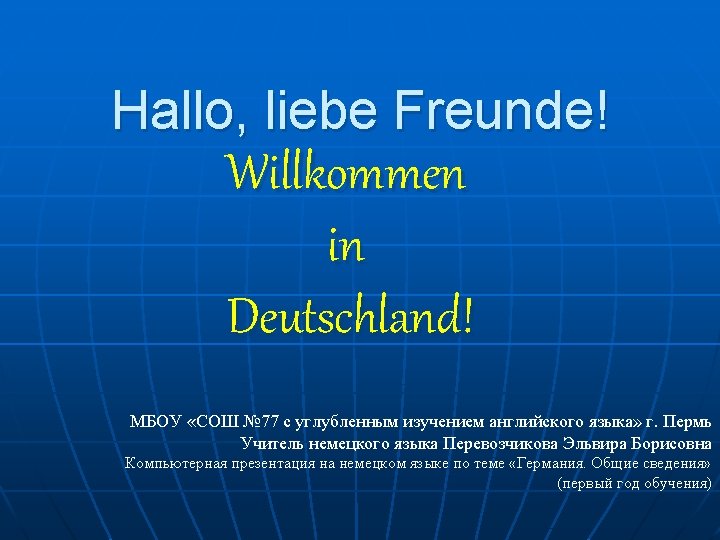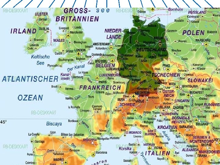Die geografische Lage Deutschlands: n n n Deutschland hat eine günstige geografische Lage. Das ist das größte deutschsprachige Land Europas. Es liegt in der Mitte Europas.