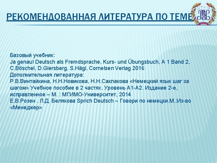 УЧЕБНО-МЕТОДИЧЕСКОЕ ОБЕСПЕЧЕНИЕ ДЛЯ САМОСТОЯТЕЛЬНОЙ РАБОТЫ СТУДЕНТОВ https: //www. grundschule-arbeitsblaetter. de https: //www. goethe. de https: //learngerman. dw. com https: //www. hueber. de/