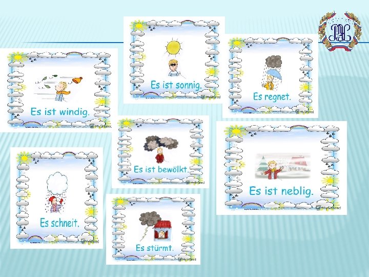ÜBUNGEN: DAS WETTER UND DIE JAHRESZEITEN Finden Sie die Sätze, die Synonyme sind. 1 Es schneit. a. Es ist sonnig. 2 Die Sonne scheint. b. Es ist windig. 3 Es ist neblig. c. Es ist nass. 4 Es ist wolkig. d. Es gibt Schnee. 5 Es ist wolkenlos. e. Es ist scheußlich. 6 Es donnert und blitzt. f. Es ist bedeckt. 7 Es bläst. g. Es ist heiter. 8 Wir haben schönes Wetter. h. Es gibt Nebel. 9 Es regnet. 10 Es ist mies. i. Der Himmel ist klar. j. Es gibt ein Gewitter.