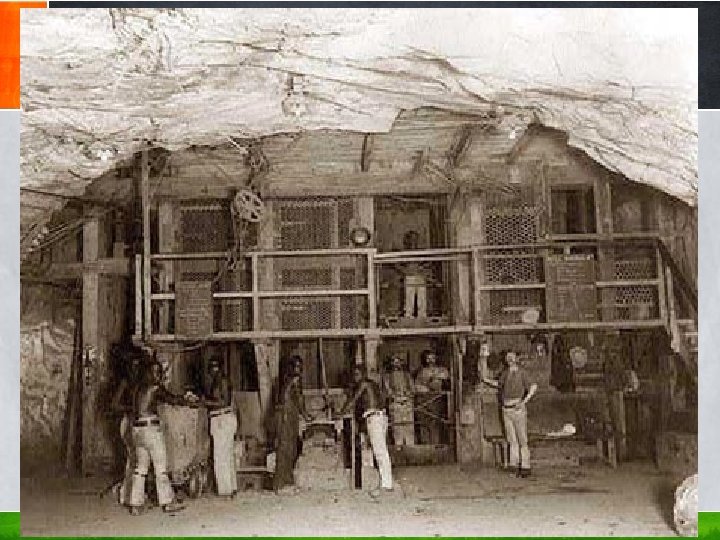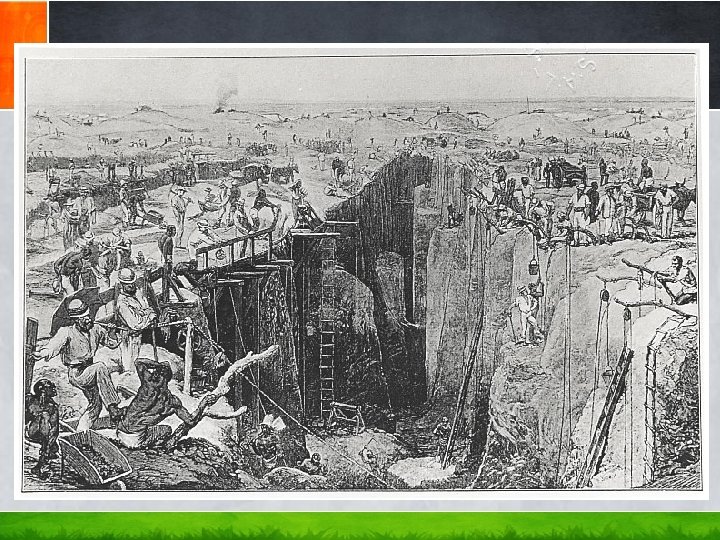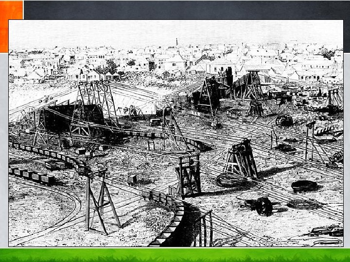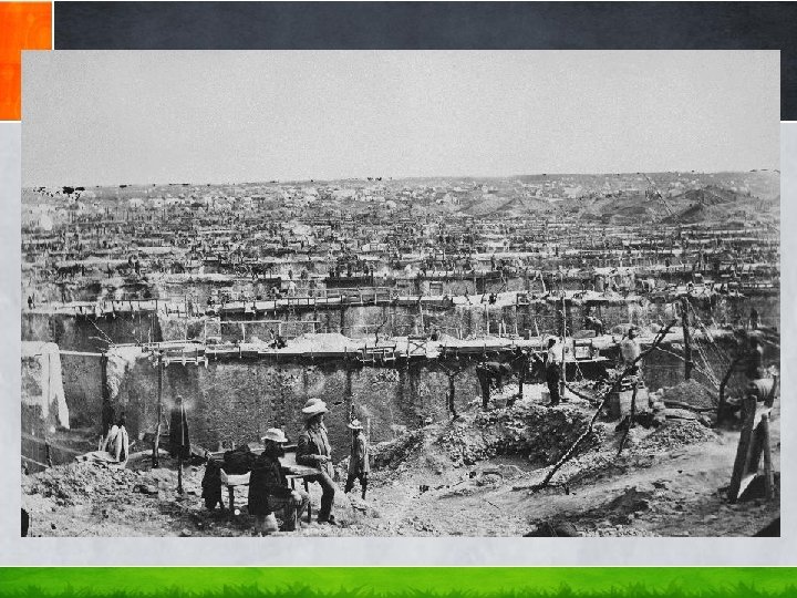 Ontdekking van diamante • In die vroeë 1870’s was daar 4, 000 kleims by die Groot Gat van Kimberley. • Teen 1880 het nege maatskappye al die kleims besit. • Die Kimberley-myn het vinnig 'n monopolie geword, waar totale beheer in die hande van een of twee groot maatskappye is.
