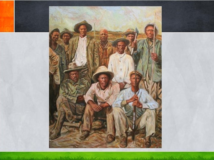 Ontdekking van diamante • Hul leier was Adam Kok, maar is later opgevolg deur Andries Waterboer. • Waterboer het 'n verdrag met die Britte onderteken, waarin verklaar is dat die Griekwas die land genaamd Griekwaland-Wes besit.