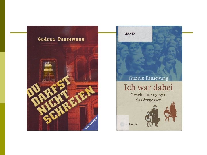 Deutsche Jugendliche als Helden Deutsche Jugendliche sind tapfer im Krieg p Nach dem Attentat auf Reinhard Heydrich: p G. Pausewang: Du darfst nicht schreien p In den letzten Tagen des Krieges: p Käthe Recheis: Geh heim und vergiss alles p
