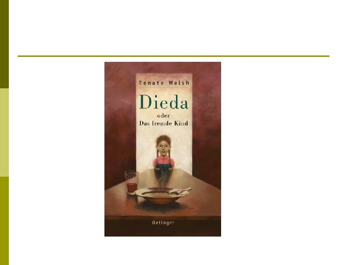 Renate Welsh: Dieda oder das fremde Kind. Oetinger Verlag, Hamburg 2002 Ursel lebt nach dem Tod ihrer Mutter bei der Familie ihrer Stiefmutter auf dem Lande. Ihr Vater ist Arzt und muss während des 2. Weltkrieges in Wien bleiben. Der Stiefopa nennt Ursel „Dieda“ und ist sehr streng zu ihr. p Der Krieg greift in den Inhalt des Buches nur als ferne Kulisse ein. Nachdem der Krieg zu Ende ist, kehrt Ursel mit ihrer Stiefmutter zum Vater nach Wien. p