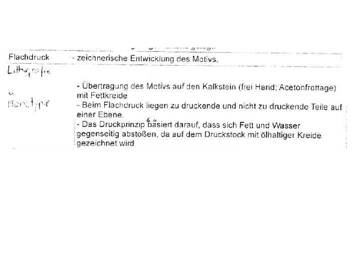 Arbeitsauftrag: Exzerpieren Sie arbeitsteilig die Texte zum Hoch-, Tief-, Flach-, Durchdruck. - Hochdruck Herkunft S. 1 - Hochdruck: Linolschnitt u. Holzschnitt S. 4, 5 - Hochdruck: Mehrplattenschnitt S. 6, 7 - Tiefdruck: Herkunft S. 1 Tiefdruck: Kupferstich S. 8, 9 Tiefdruck: Kaltnadelradierung S. 10, 11 Tiefdruck: Aquatinta (Ätzradierung) S. 14, 15 - Flachdruck Herkunft S. 1 - Flachdruck Lithografie S. 16 - Monotypie (Hübner) - Durchdruck (Siebdruck) Papier- u. Abdeckschablonendruck S. 18, 19