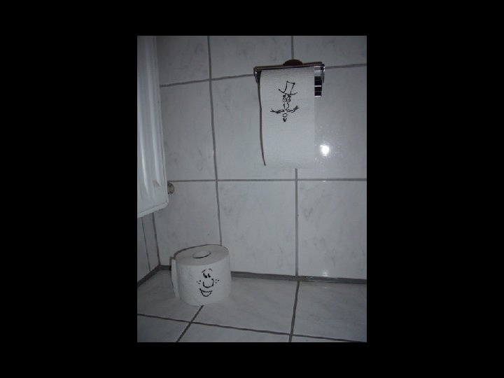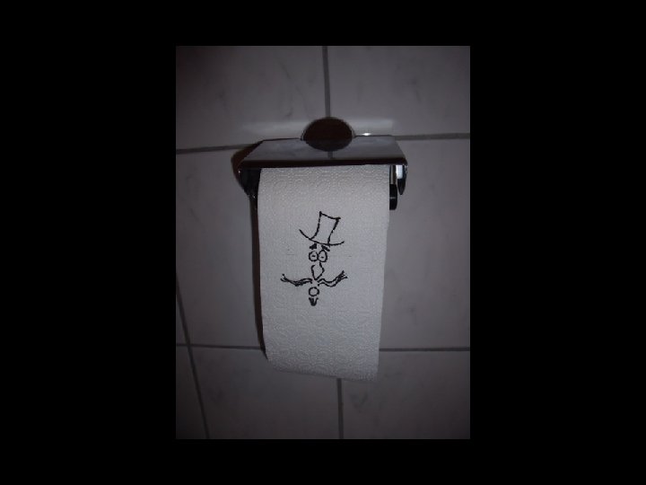 Die Spritzpistole schießt fort an Papierklumpen mit Duftöl dran, auf alle, die WC-Papier umsonst vergeuden. Doch mit Manier genoss Herr O-Toilett mit Freuden, dass er sein Bäuchlein hielt. (Verbeugen!)