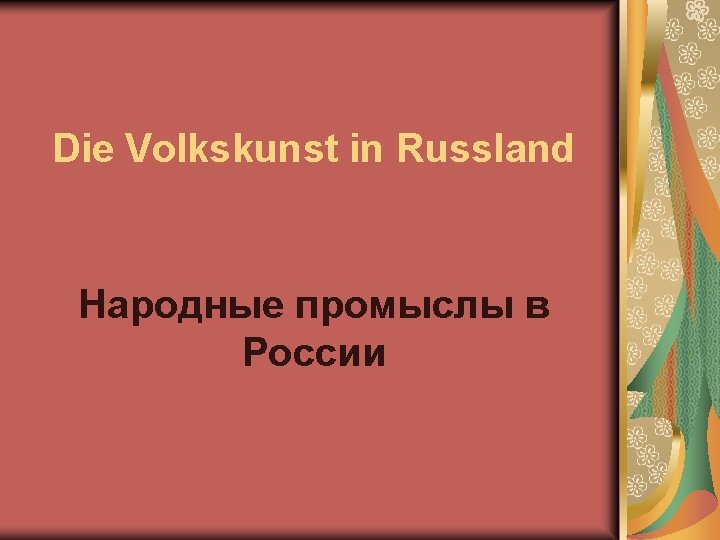 Die Volkskunst ist ewig(вечно), Das ist das Herz des Volkes. Sie macht uns seelisch, Sie ist der Ruf des Herzens.