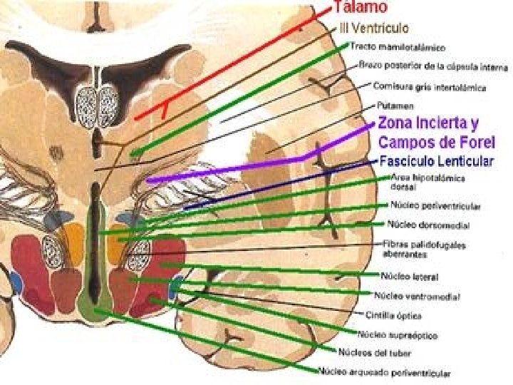 SUBTÁLAMO Partes anatomicas: Nucleo Subtalamico Zona Incierta Núcleos de las Areas de Forel