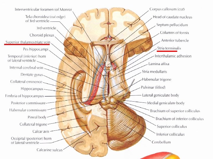 Superior surface n Terminal Sulcus (superior Thalamostriate vein and stria terminalis courses here)