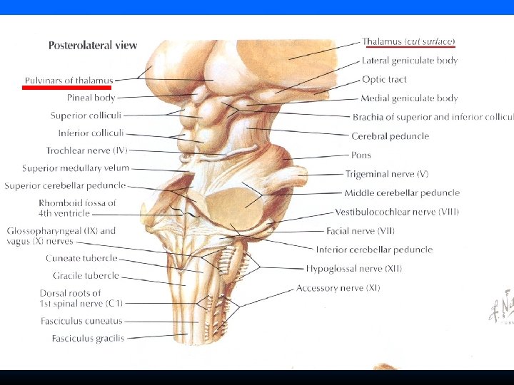Thalamus Relations: Ant. : Head of caudate nucl. + genu of internal capsule Ant. End forms the post. Border of interventricular foramen Post. : Pulvinar of thalamus