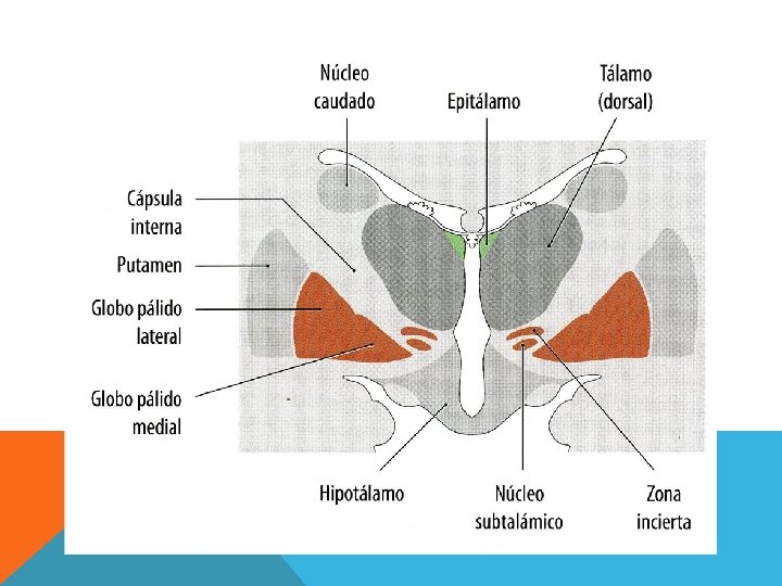 CORTEZA SENSITIVA ESPINOTALÁMICO Y PARES CRANEALES CORTEZA MOTORA GLOBO PÁLIDO SISTEMA LÍMBICO NÚCLEO AMIGDALINO