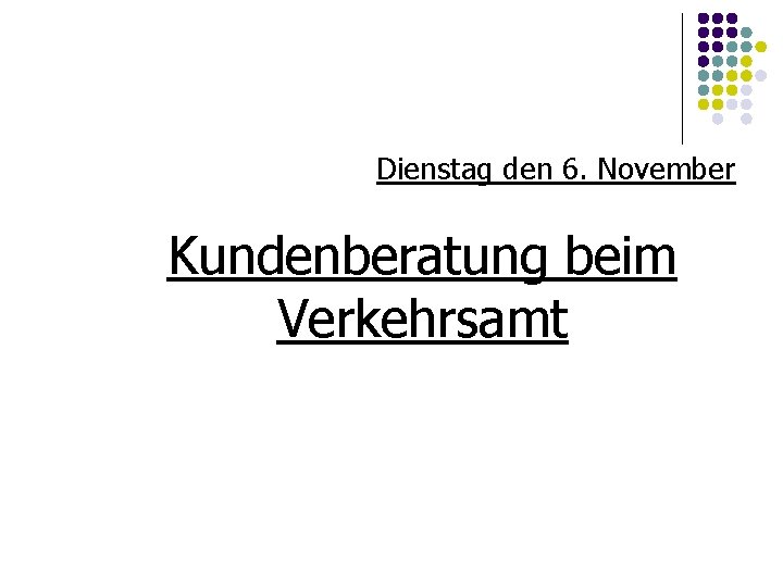 Dienstag den 6. November Kundenberatung beim Verkehrsamt