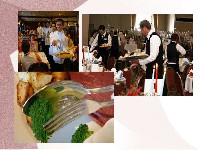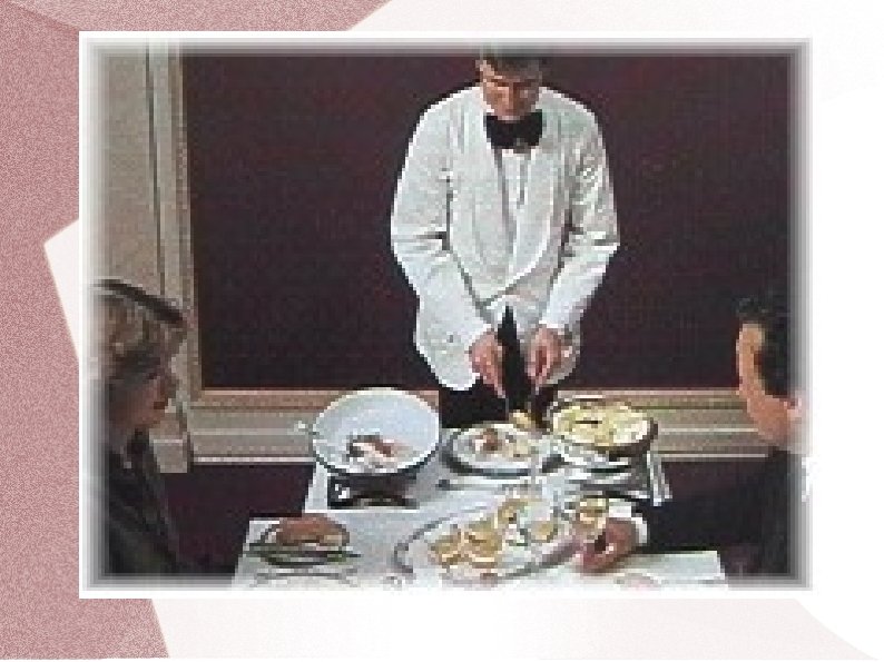 Dažādas pasniegšanas metodes Amerikāņu gaumē Krievu gaumē Angļu gaumē (paveids- servējamie ratiņi) Franču gaumē Ēdienu pagatavošana viesu klātbūtnē - flambēšana